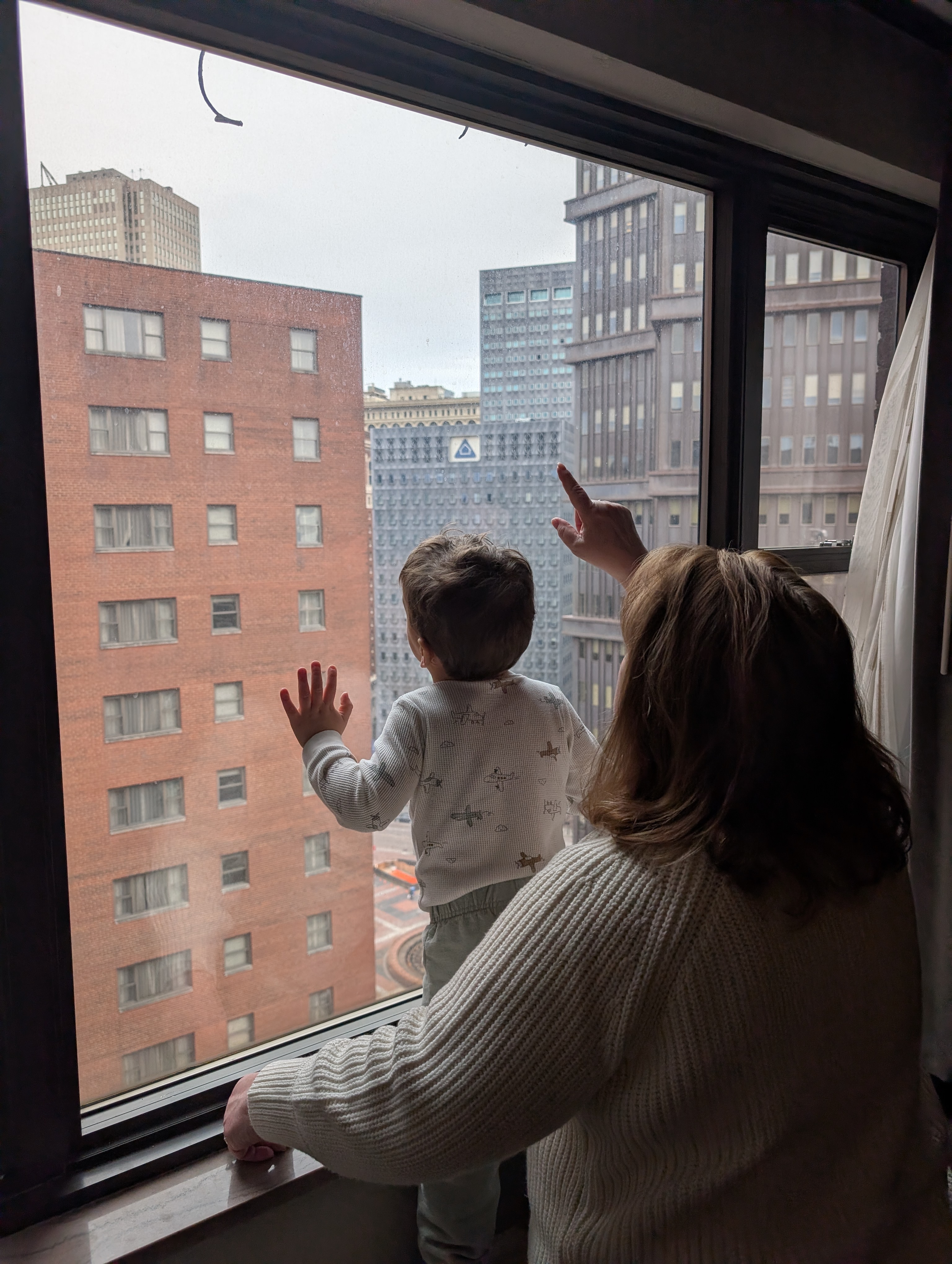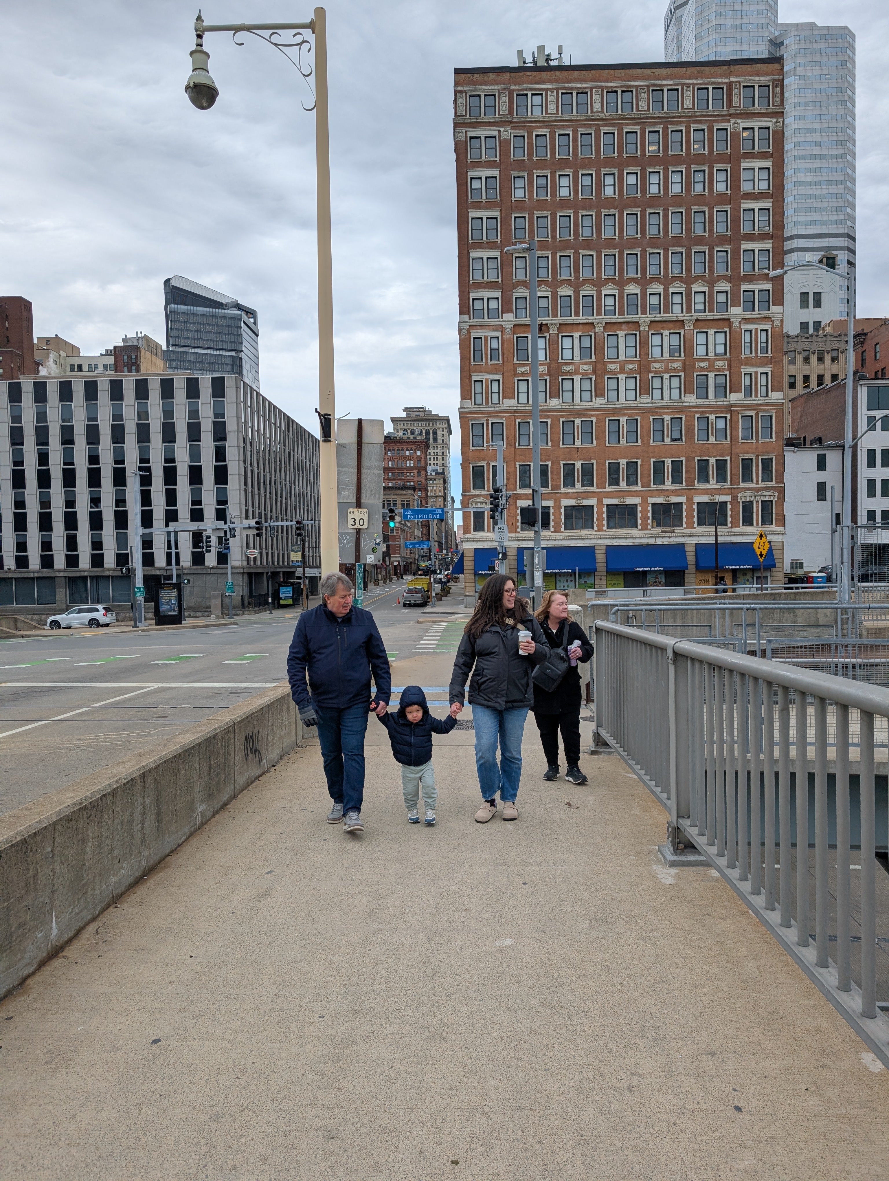 Our Christmas gift to Sarah’s dad Jeff was tickets to the Journey farewell tour in Pittsburgh, which made for a perfect halfway meeting point for everyone. We turned it into a full weekend: Harvey experienced his first NHL game (Penguins vs. Vegas Golden Knights), we explored the city, and Sarah and I got our belated birthday dinner. Our cousin Miranda, who’s studying at the University of Pittsburgh, graciously babysat Harvey while we were at the concert — we forgot to take a picture, naturally, but it was great to see her.