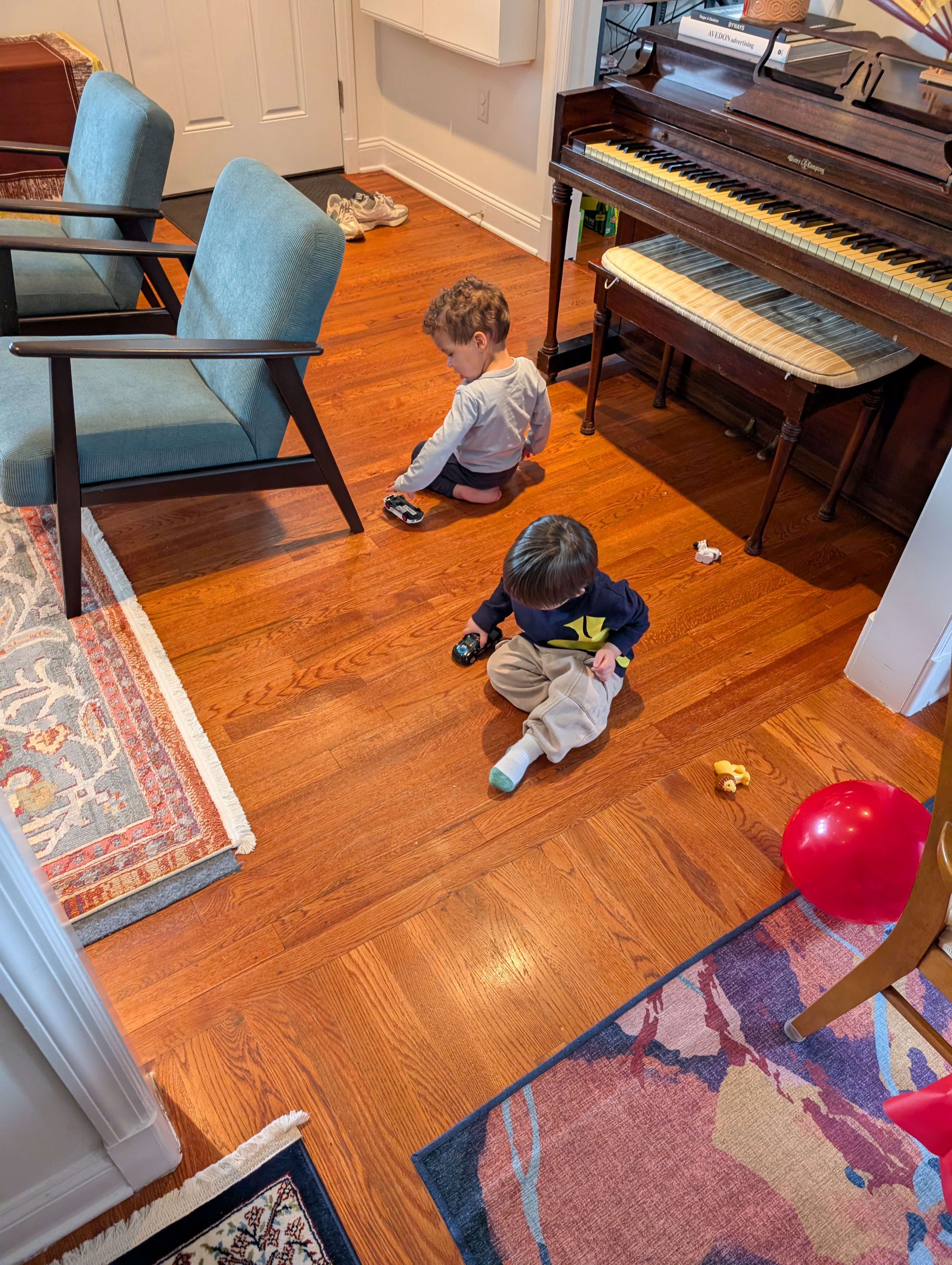 - Harvey had an impromptu playdate with his swim friend Rory.